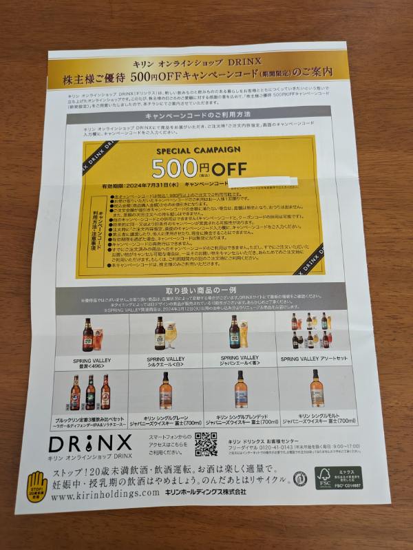 のキリンホールディングスの商品が貰えます(^^)