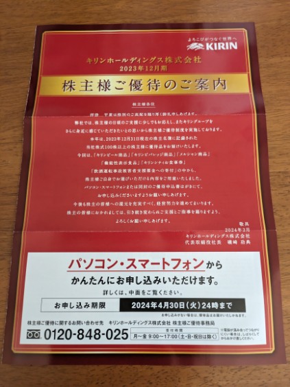 株主優待の案内が届きました~