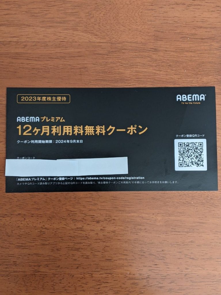ABEMAプレミアムの12ヶ月利用料無料クーポンです。