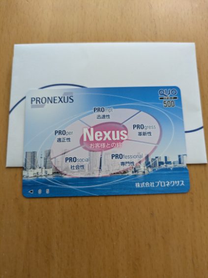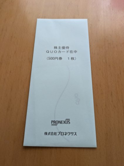 上場企業のディスクロージャー、 IR支援大手で電子開示用のシステムに 強みのあるプロネクサス(7893)から 株主優待が届きました~ 500円のQOUカードです(^^) いいですよね~QUOカード嬉しいです。 ちなみに100株以上を10年以上保有すると 3000円に金額がUPするんです。 まだ1年も保有していないのに 気が早い話ですがwww 3年以上で1500円に、5年以上で2000円に UPするんで長期保有に向いているなと 自分では思ってます。