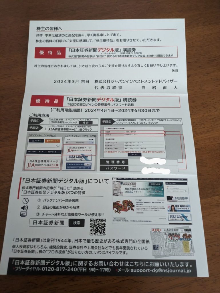 日本証券新聞(デジタル)の3ヶ月分の購買券になります~