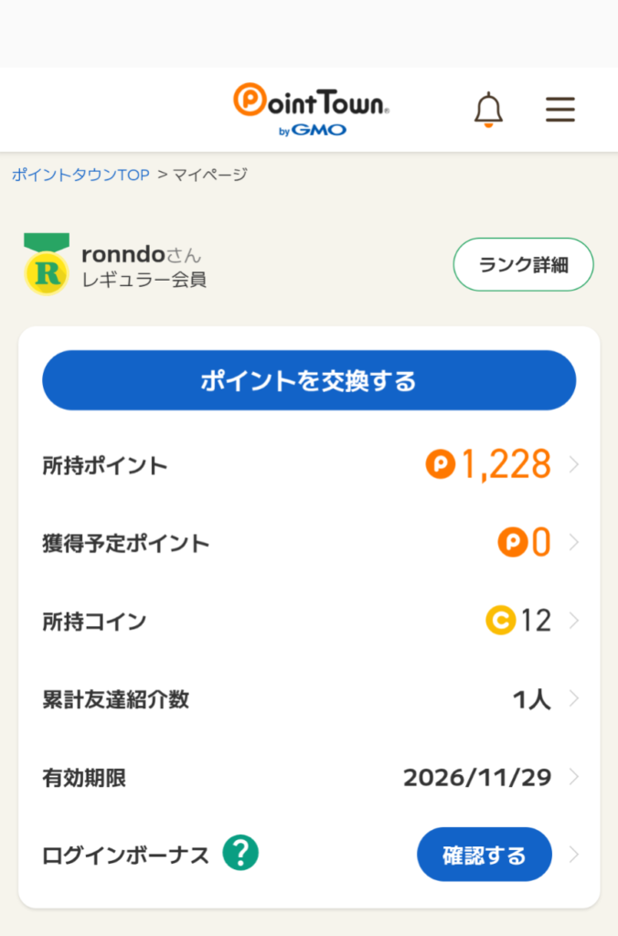 PointTownで1万円チャレンジ15ヶ月目結果はなんと+101ポイントでした!!