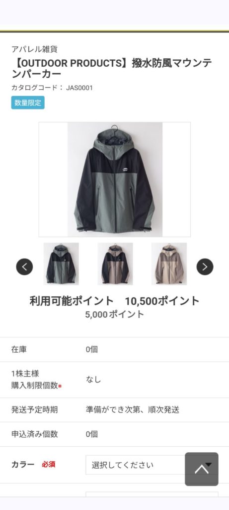 今回の狙いはアパレル雑貨で 撥水防風のマウンテンパーカーですが……
